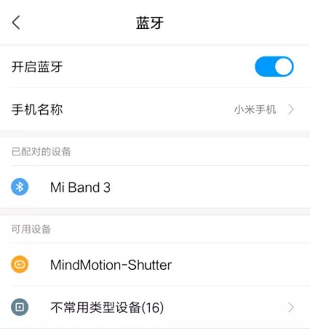 2. 選擇對應(yīng)名稱(MindMotion-Shutter)的藍(lán)牙設(shè)備并進行配對。
