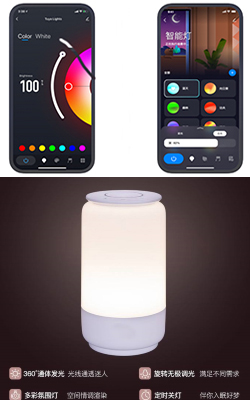 智能氛圍燈可以根據(jù)自身照明需要(如顏色、溫度、亮度和方向等)來設(shè)定自己喜歡的場景情景照明效果,根據(jù)各自要求、場景情況,在不同的空間和時(shí)間選擇并控制光的亮度、灰度、顏色的變化。便捷的智能手機(jī)也提供了更人性化的智能控制渠道,營造不同的室內(nèi)智能照明效果。