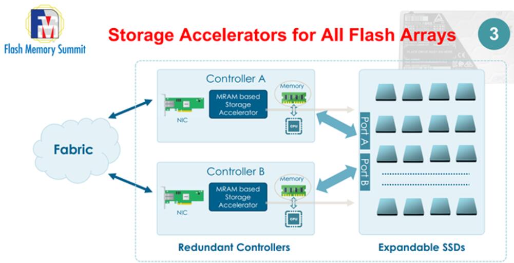 在全閃存陣列的存儲控制器中,MRAM可以作為緩存加速,并提升產(chǎn)品性能及可靠性,同時可以不需要額外的電池或者電容。