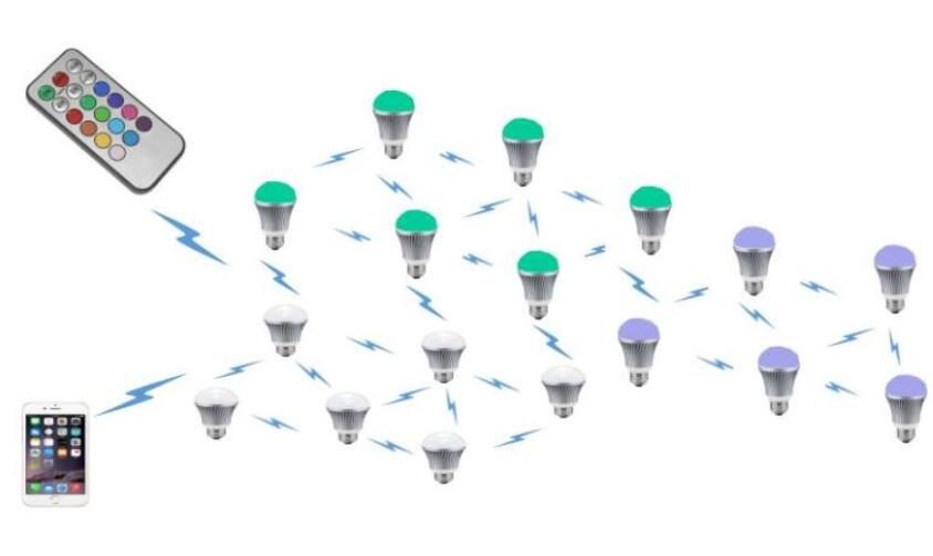 該方案采用巨微創(chuàng)新的MG-Mesh系統(tǒng)架構,用最低成本實現LED自組網和調光調色。手機和遙控器都可以控制。