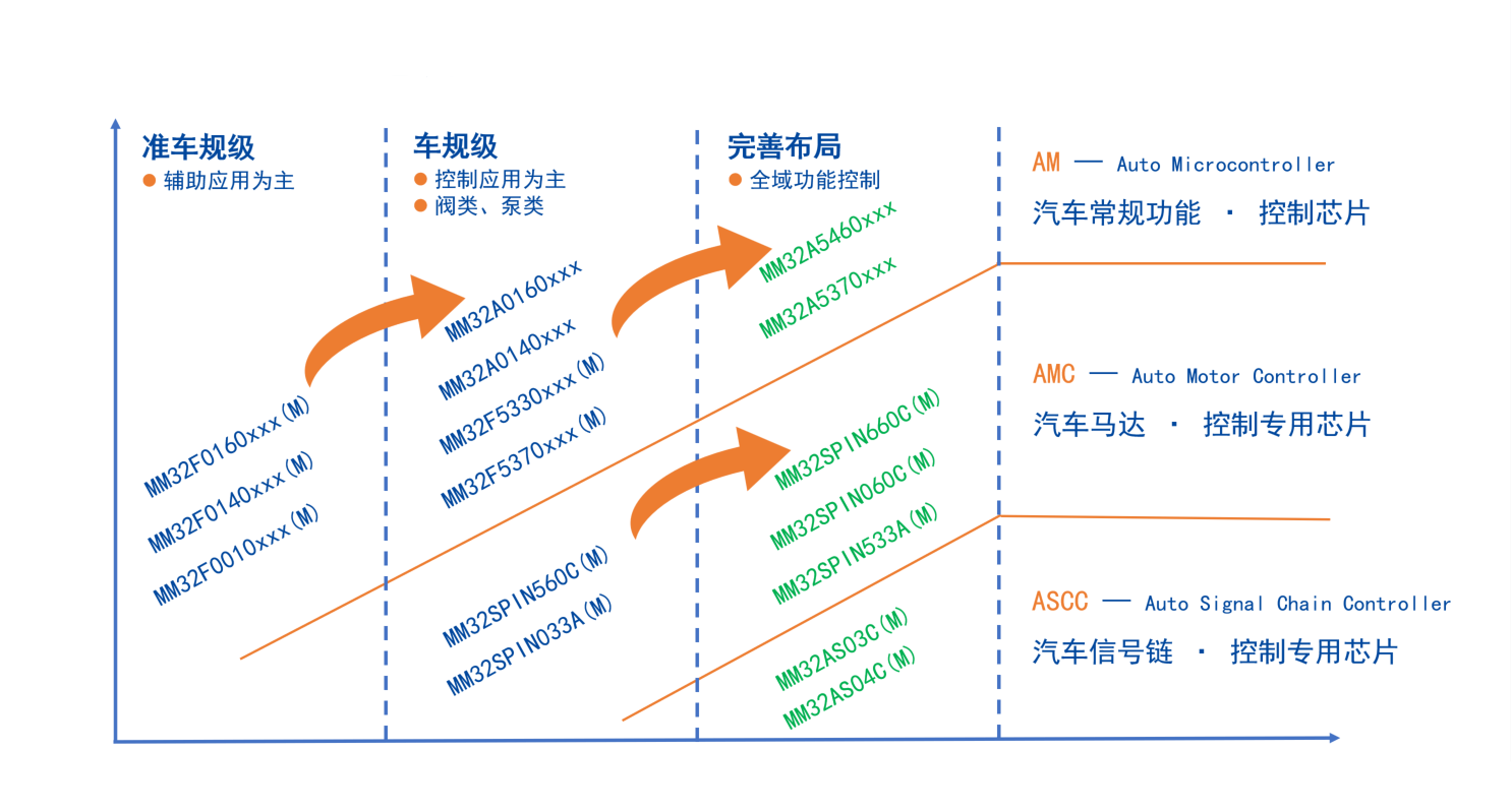 提及靈動(dòng)微電子在車規(guī)應(yīng)用芯片領(lǐng)域的整體布局,從發(fā)展規(guī)劃上,可分為三個(gè)階段:過(guò)去的2019-2022年為預(yù)備期,經(jīng)過(guò)在準(zhǔn)車規(guī)級(jí)和輔助應(yīng)用領(lǐng)域的3年積累,今年起,靈動(dòng)已正式進(jìn)軍車規(guī)級(jí)產(chǎn)品,重點(diǎn)攻克汽車控制以及閥類、泵類的應(yīng)用領(lǐng)域。后續(xù),公司將逐步完善在車規(guī)應(yīng)用芯片領(lǐng)域的產(chǎn)品布局,最終形成覆蓋汽車全域功能控制的完整產(chǎn)品陣列。