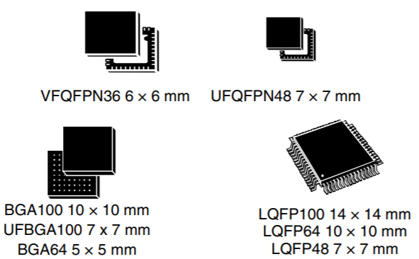 MM32F103C8T6產(chǎn)品提供 LQFP100、LQFP64、LQFP48、LQFP32 和 QFN32 共 5 種封裝形式;根據(jù)不同的封裝形式,器件中的外設配置不盡相同。