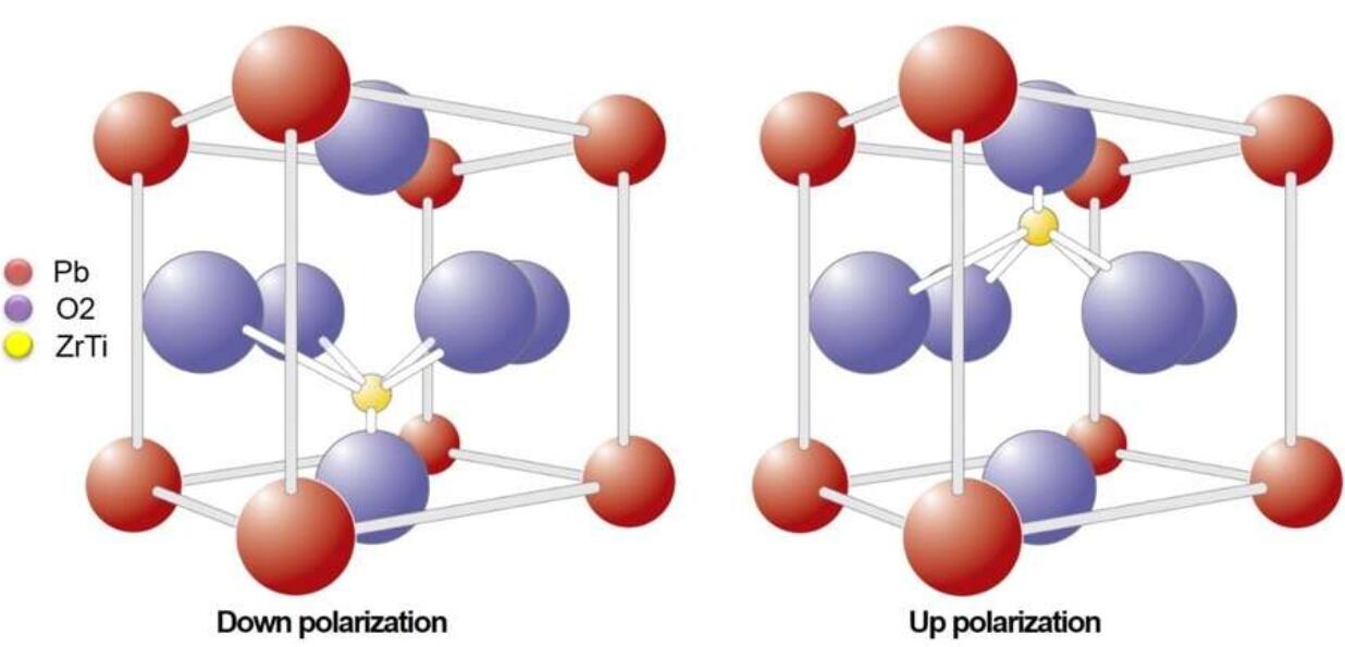 這些吸引人的特性是鋯鈦酸鉛(PZT)是其中一種材料的鐵電性能的結(jié)果。PZT具有鈣鈦礦晶體結(jié)構(gòu),中心有一個(gè)陽離子(見圖1)。該陽離子可以處于兩個(gè)位置之一,并且可以通過施加電場來切換位置。每個(gè)轉(zhuǎn)換都會(huì)產(chǎn)生“開關(guān)電荷”(Q s),可以將其讀取以表示邏輯1或0。