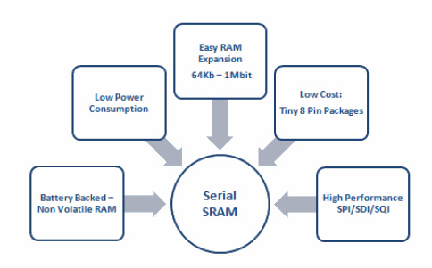 串行SRAM和NVSRAM在尺寸、電壓、速度、功耗和成本等方面帶來了諸多優(yōu)勢。